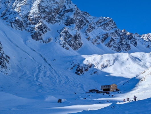 Appena terminato il mio tramezzino, erano già tutti in piedi pronti per rientrare dallo stesso percorso. Varcata la porta del bivacco e tornata all’aria aperta, sono stata colpita da un vento gelido… e allora via, di corsa verso il basso!